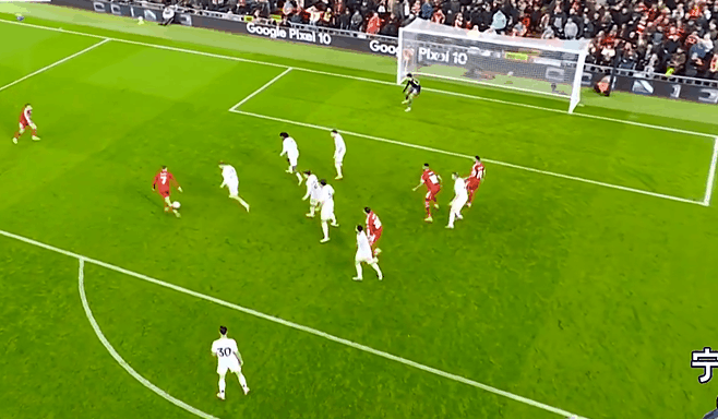 下半场回来,加克波再次击中远端立柱!利物浦加快攻防的节奏,前场的配合更加简练。第60分钟,麦卡利斯特一脚仓促的抢射,稍稍偏出球门。双方不断的走马换将,麦卡利斯特、赫拉芬贝赫、布拉德利同时下场,伊萨克、埃基蒂克组成双中锋,斯洛特将阵型冒险的调整为424站位。第65分钟,萨拉赫后点无人防守,有充足的时间调整,但是一脚劲射离奇的偏出球门。