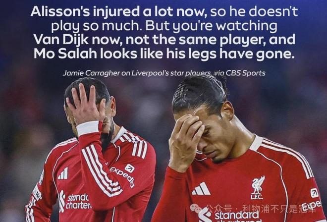 但我不喜欢批评他们的场上表现,因为他们都是传奇。但他们都在老去,特别是萨拉赫。范迪克现在已经无法帮助队友了,因为他现在已经自顾不暇,这意味着他现在是一名普通的中卫,就像我曾经的某个阶段。他现在已经不是超人了。