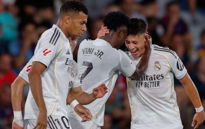 本场比赛,皇马在首发上派出13-卢宁、12-阿诺德、17-劳尔·阿森西奥、18-卡雷拉斯、23-费兰·门迪、8-巴尔韦德、14-琼阿梅尼、6-卡马文加、15-居莱尔、7-维尼修斯、10-姆巴佩的阵容。