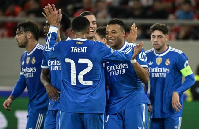 北京时间11月27日凌晨,欧冠联赛阶段第5轮一场比赛,皇家马德里客场4-3逆转奥林匹亚科斯,姆巴佩上演大四喜,积分达到12分,升至积分榜第五位。